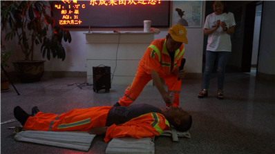 首先由2019年度夏季防暑降温应急演练执笔策划人赵倩,进行了高温下,如何识别高温中暑常识介绍,并由副经理林自博和三八所南山班班长史恩龙现场演示施救环节,在简短的演练过程中,参加演练的各级别专、兼职管理员工,作业员工代表们受益匪浅,并将学到的防暑降温应急演练常识口口相传,在实际工作应用,以避免高温下,中暑员工不能及时施救带来的危害,祝福洁立德环卫人平安愉快地度过2019高温季,圆满完成环卫作业任务。---行政部