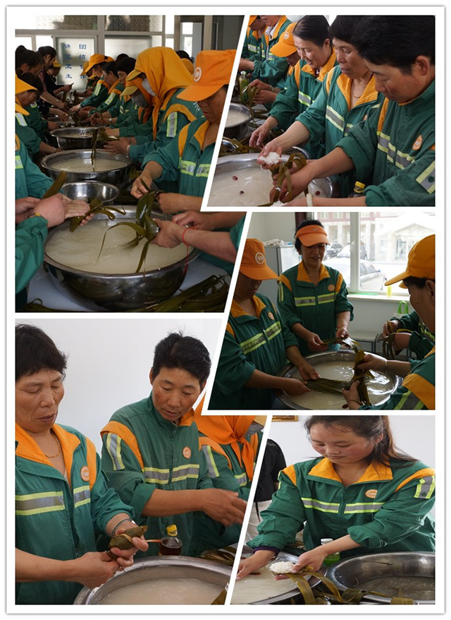 为迎接端午节,公司组织了一次别开生面的“巧手”包粽子大赛。2014年5月27日下午一点比赛正式开始,历时4个小时,一线环卫工人各班派出3名“巧手”代表,管理人员派出3名代表,总计8个小组,24人参加了本次比赛。以每组检验合格的粽子总个数作为最终成绩。经过4个小时的角逐,虎滩班获得第一名,中南路班获得第二名。为迎接端午节的到来,比赛结束后公司为每位环卫工人发放了粽子和鸡蛋。——通讯员:杨鑫欣