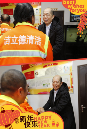 亲切的微笑,温暖的问候,和谐的场面,激励的话语,令参加慰问活动的大连洁立德环卫公司的员工们精神振奋,斗志昂扬!纷纷表示不辜负谭书记的殷切希望,撸起袖子加油干,为大连市和谐文明的新春佳节贡献环卫人的力量!陪同谭书记走访的大连市委办公厅副主任王标,参加慰问活动的大连市城建局局长刘爱博、中山区区长曲寿巍、市环卫处处长程木炜、中山区城建局局长魏思泉、中山区环管中心主任王毅等,也为环卫工人送上了节日的问候和诚挚的祝福!
