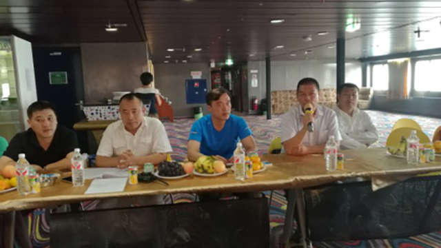泛营公司总经理齐中杰带队一行领导上船,在中秋节对船员进行慰问,并高度赞赏船员,自接受以来,努力工作,保证船舶安全,没有一次耽误船期。