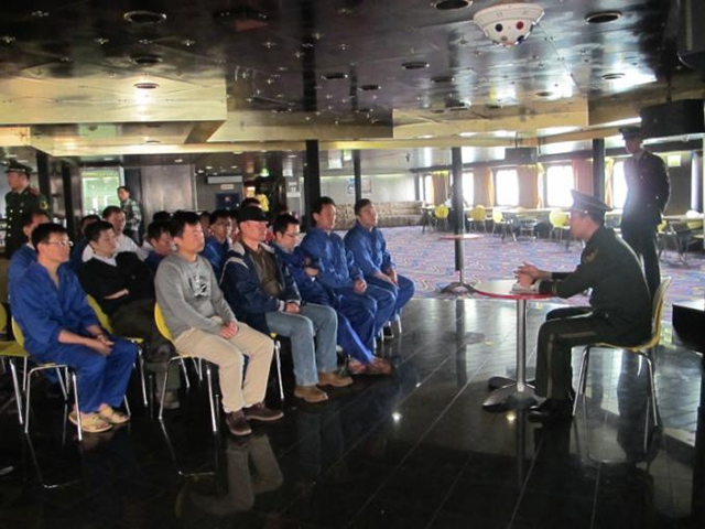营口市边防检查站派遣专业人员,对我轮船员进行边防纪律培训,要求我们船员积极配合边防工作,一起守卫者祖国的大门。公司对这次培训高度重视,特地安排专职人员陪同,并对培训现场进行摄像,当作教材,要求船员不断学习。
