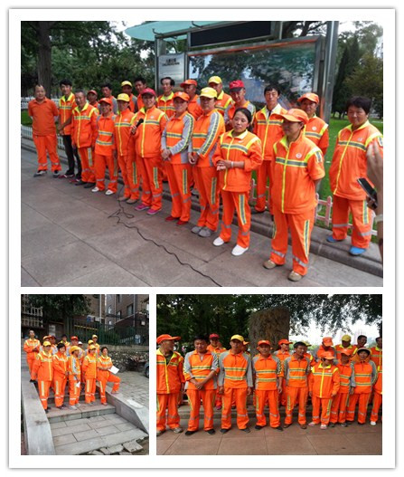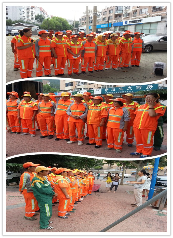 2015.09月为纪念抗战胜利70周年,洁立德扫保作业员工在路段激情唱响革命歌曲。