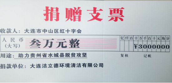 根据市委市政府、区委区政府的工作要求,大连洁立德环境清洁有限公司总经理余国平,党支部书记、工会主席王锋于10月17日上午10:00在中山区机关二楼礼堂参加了中山区2018年“扶贫日”捐赠活动。