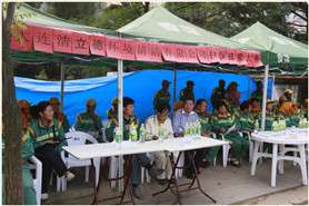 2013.09.24洁立德首届扫保作业员工技能比赛在三八所休息点所在区域望海街举行,项目经理余国平,党支部书记、工会主席王锋参加了全程比赛活动。比赛项目分为三个环节:扫保常识竞答,限时扎扫把,路街标准扫保等项目,各所以班为单位,组成三人参赛小组参加了活动。最终由代春艳率领的三八所鲁迅路班荣获第一名,虎滩所孙世俊率领的中南路班荣获第二名,其他参赛班荣获参与奖。